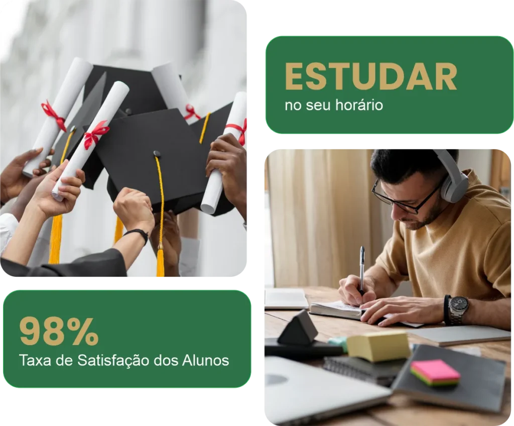 As aulas são 100% online e ficam disponíveis na nossa plataforma de estudos 24 horas por dia, 7 dias por semana. Você pode assistir às videoaulas, ler o material didático e fazer os exercícios no seu próprio ritmo, de qualquer lugar.